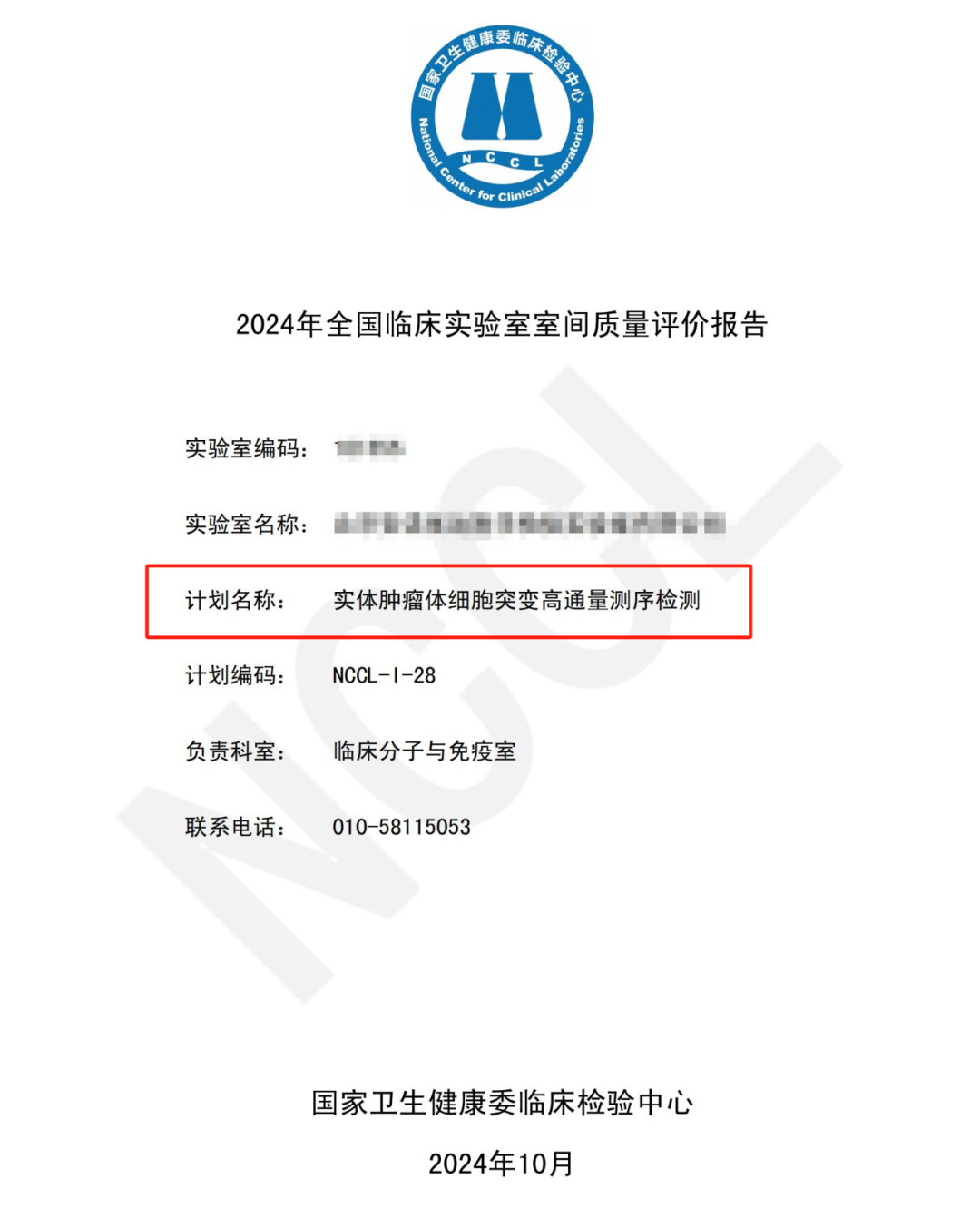 安诺优达医学检验实验室满分通过2024年全国实体肿瘤体细胞突变高通量测序检测室间质评